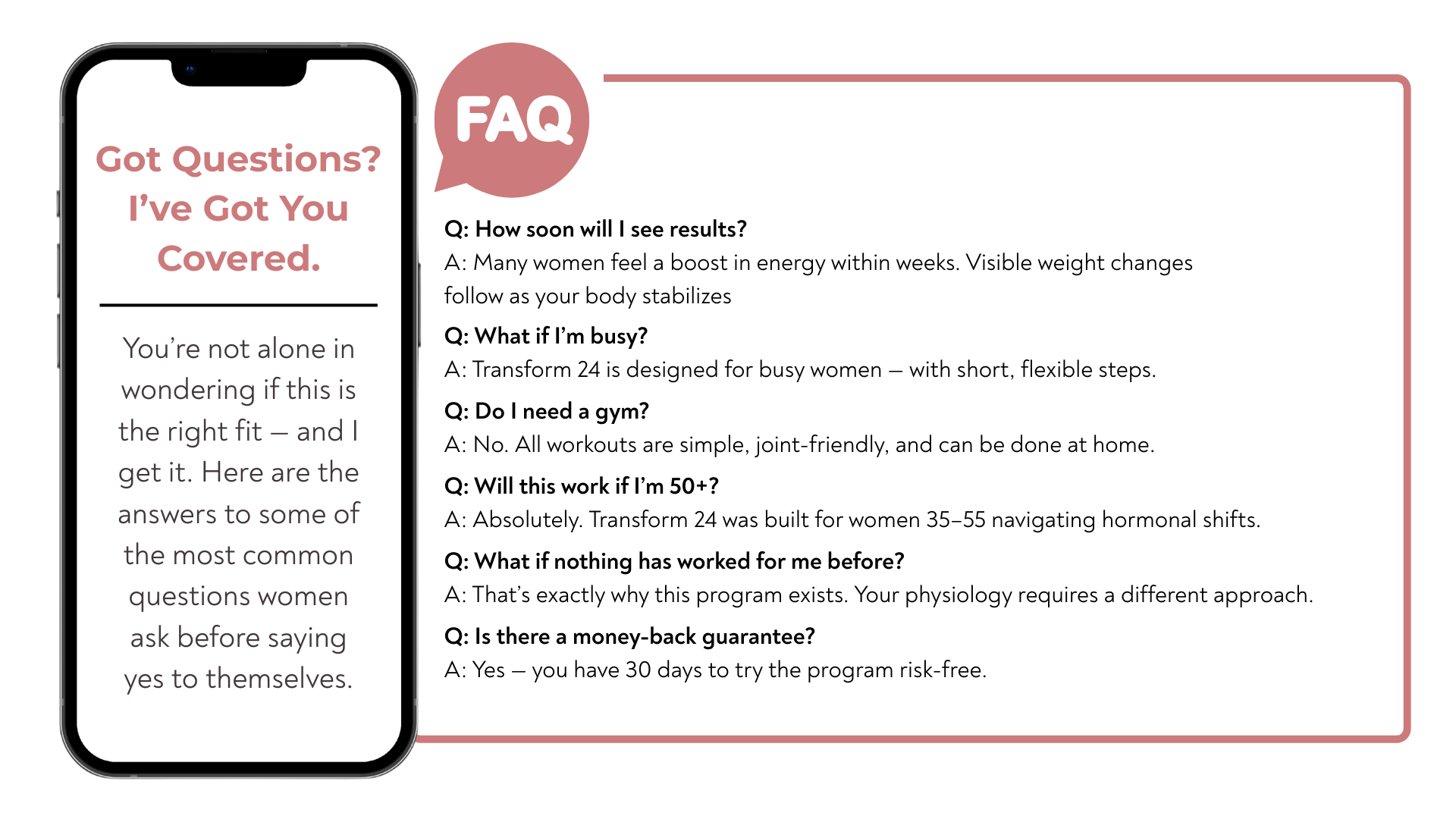 Transform 24 isn’t just a program—it’s a partnership. You’re not broken. You’re not too late. You’re one decision away from your transformation.